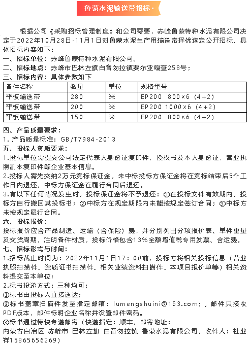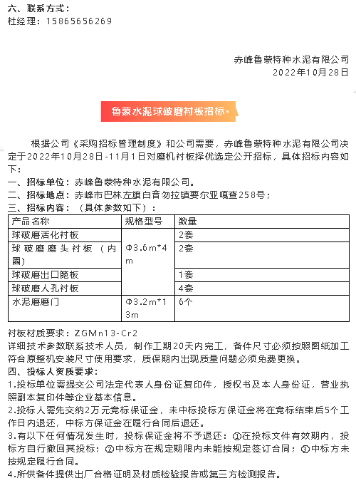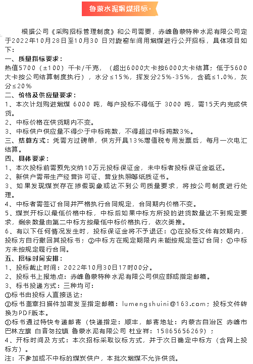 【招標(biāo)公告】魯蒙水泥