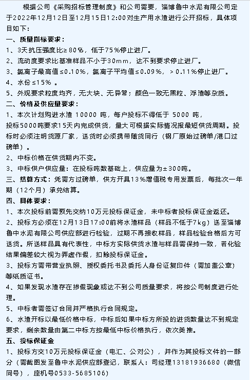 【招標(biāo)公告】魯中水泥
