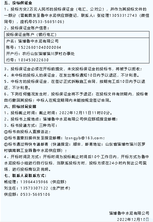 【招標(biāo)公告】魯中水泥
