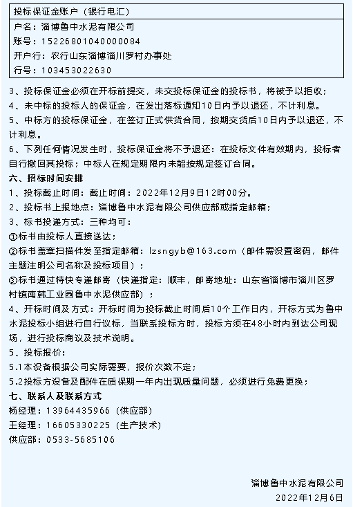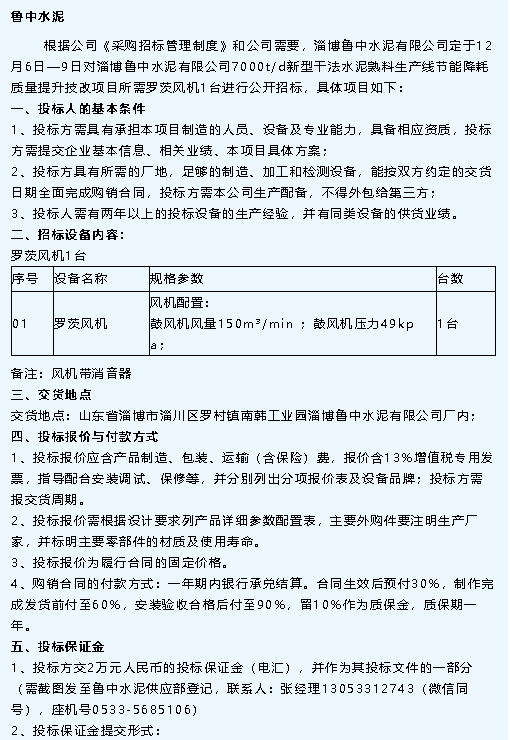 【招標(biāo)公告】魯中水泥、黃驊三陽