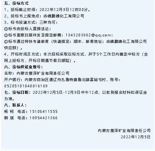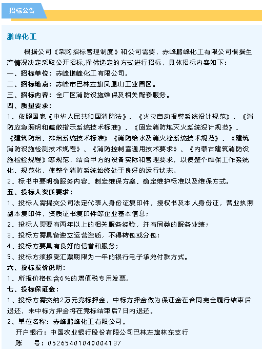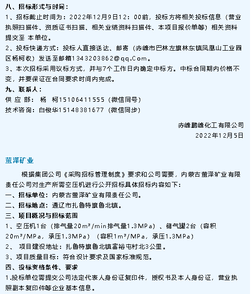 【招標公告】鵬峰化工、螢澤礦業(yè)