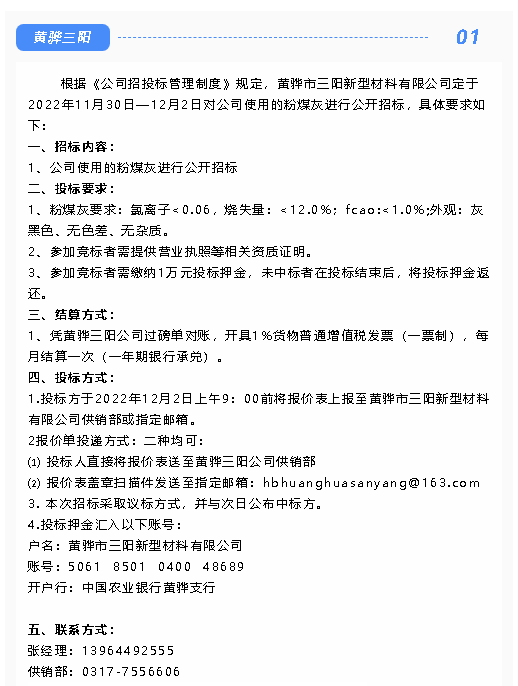 【招標(biāo)公告】黃驊三陽(yáng)粉煤灰、爐渣招標(biāo)