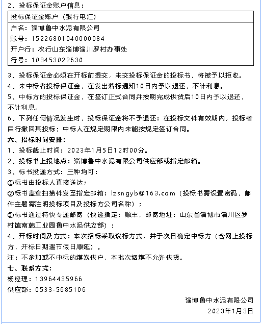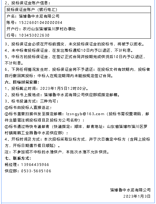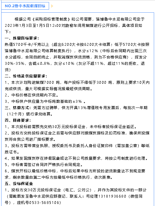 【招標(biāo)公告】魯中水泥水渣、煙煤招標(biāo)