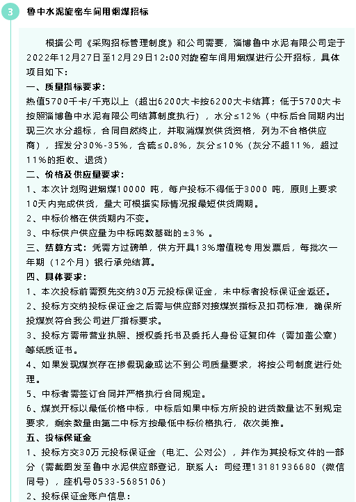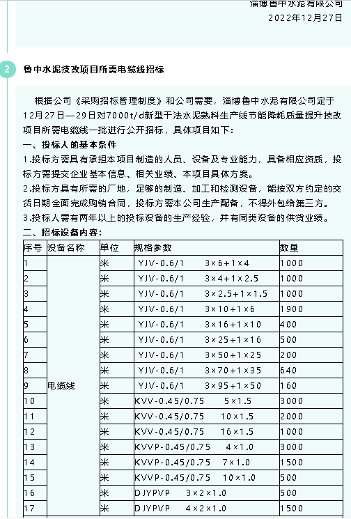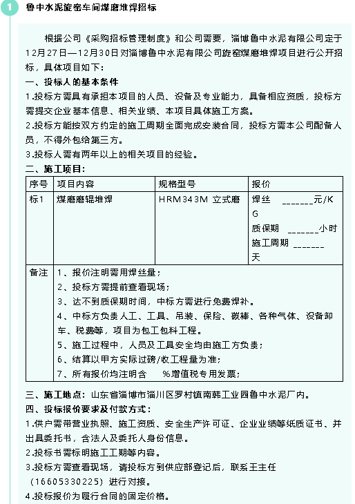 【招標(biāo)公告】魯中水泥
