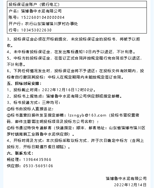 【招標(biāo)公告】魯中水泥、重山思沃瑞