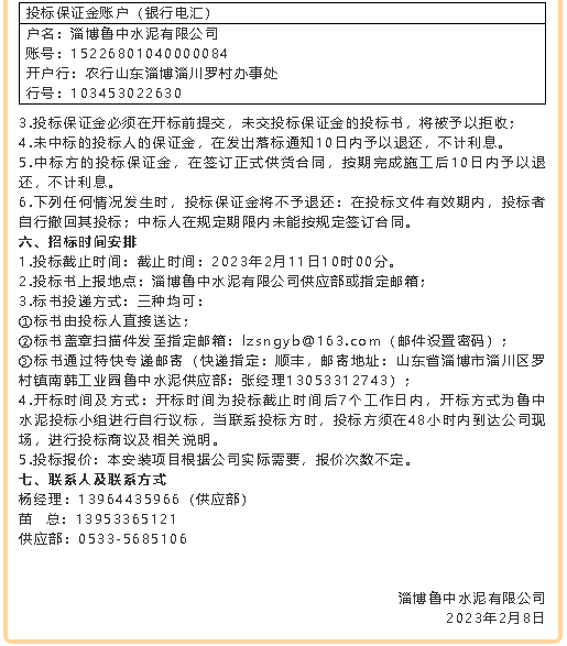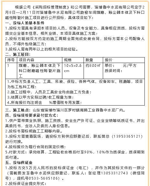 【招標(biāo)公告】魯中水泥