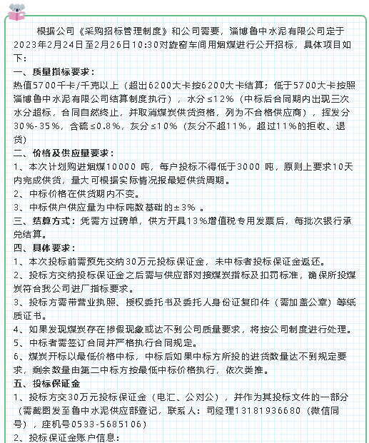 【招標公告】魯中水泥