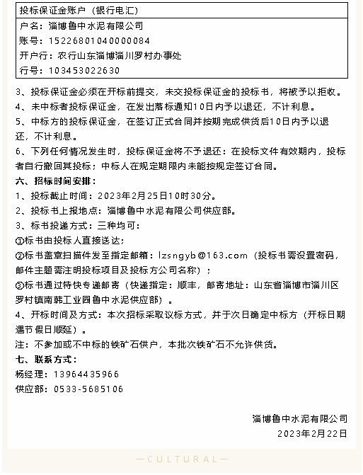 【招標(biāo)公告】魯中水泥