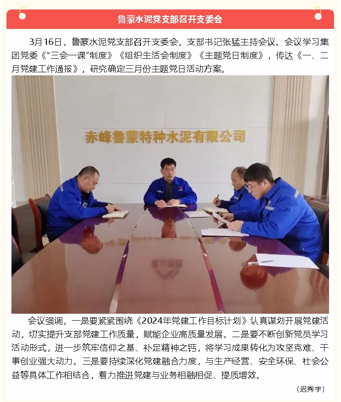 【黨建】魯蒙水泥黨支部、黃驊三陽(yáng)黨支部召開(kāi)支委會(huì)