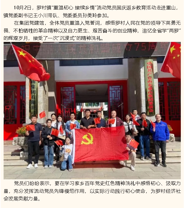 【黨建】鎮(zhèn)流動黨員國慶返鄉(xiāng)教育活動走進重山