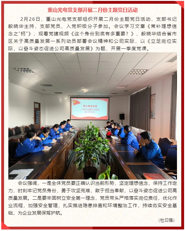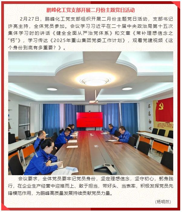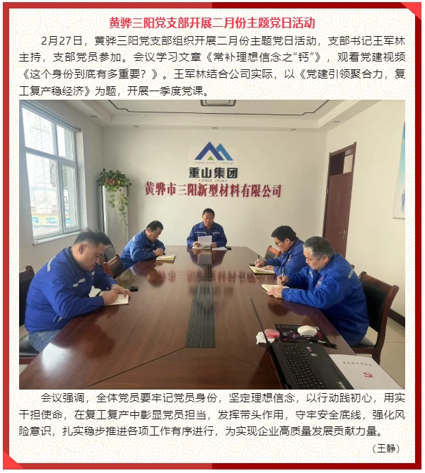 【黨建】重山光電黨支部、黃驊三陽(yáng)黨支部、鵬峰化工黨支部分別開(kāi)展二月份主題黨日活動(dòng)