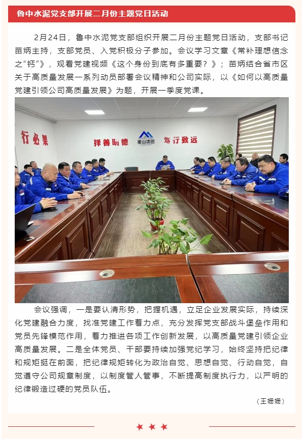 【黨建】南韓村黨支部、魯中水泥黨支部分別開展二月份主題黨日活動
