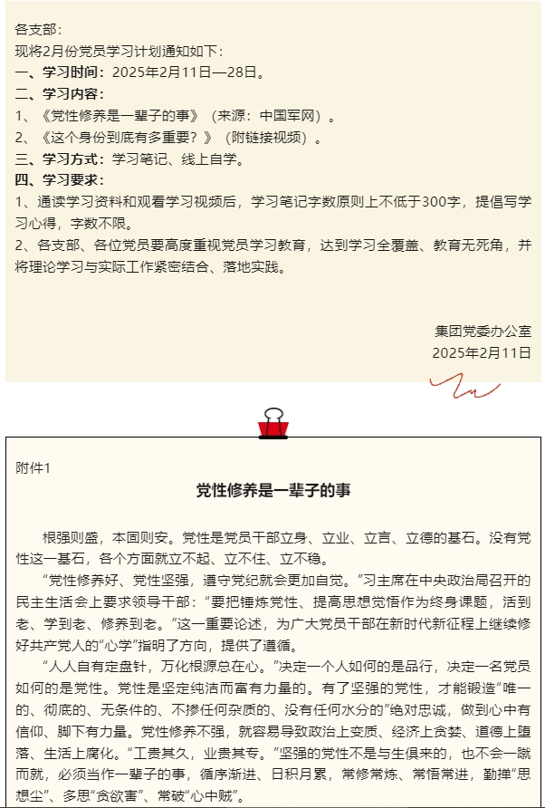【通知】集團黨委2月份學習通知