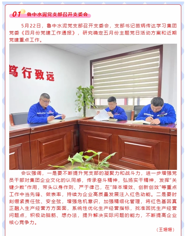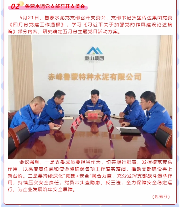 【黨建】魯中水泥黨支部、魯蒙水泥黨支部分別召開支委會