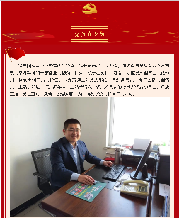 【黨員在身邊】王浩:銷售一線的“排頭兵”