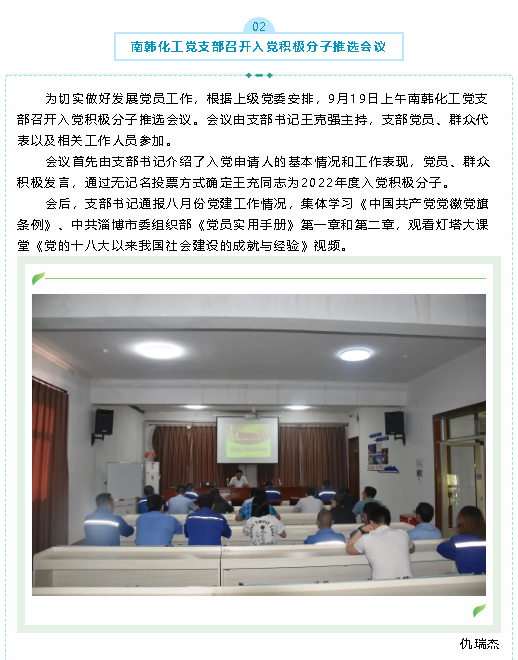 【黨建】魯中水泥黨支部召開主題黨日活動(dòng)、南韓化工黨支部召開入黨積極分子推選會(huì)議