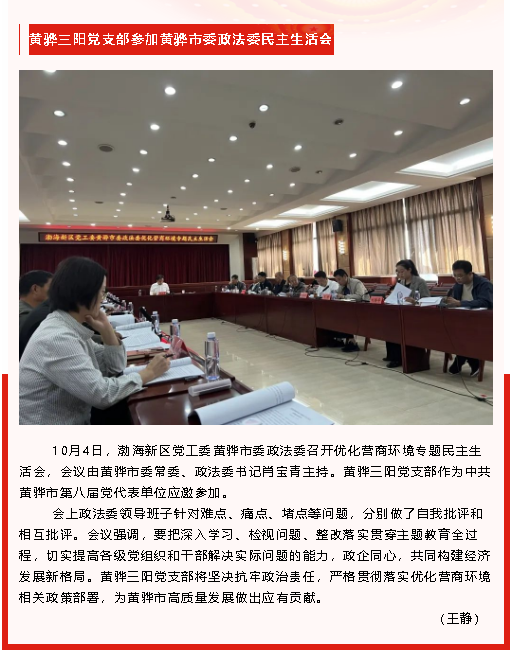 【黨建】集團(tuán)黨委開展9月份黨建工作督查、黃驊三陽黨支部參加黃驊市委政法委民主生活會