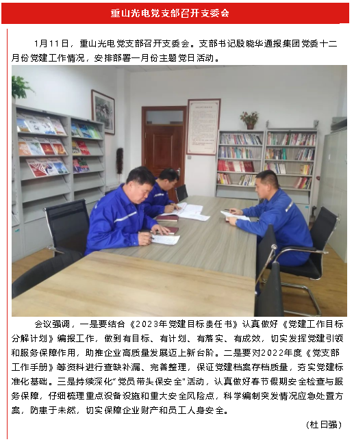 【黨建】集團(tuán)機(jī)關(guān)黨支部、重山光電黨支部召開支委會(huì)
