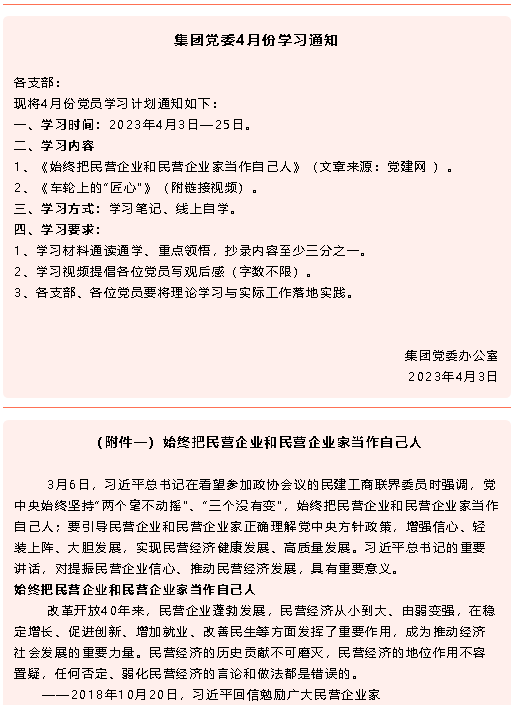 【通知】集團(tuán)黨委4月份學(xué)習(xí)通知