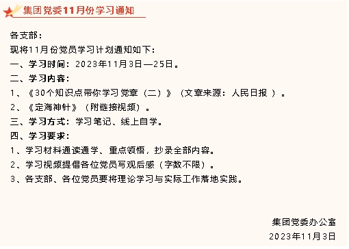 【通知】集團黨委11月份學(xué)習(xí)通知