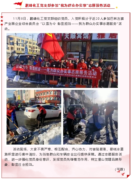【黨建】黃驊三陽(yáng)黨支部召開預(yù)備黨員轉(zhuǎn)正支部大會(huì)、鵬峰化工黨支部參加“我為群眾辦實(shí)事”志愿服務(wù)活動(dòng)