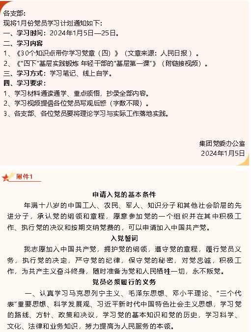 【通知】集團黨委1月份學(xué)習(xí)通知