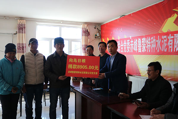 魯蒙公司總經(jīng)理周海得知情況后,立即在公司范圍內(nèi)發(fā)起了愛心捐款的倡議并帶頭捐款。捐款倡議得到了公司上下的積極響應(yīng),大家紛紛伸出援助之手,積極參與到這次愛心捐款活動中來.......,點點愛心,匯聚成河,無私助人,溫暖真情。僅僅兩天時間捐款達(dá)到8000余元。3月27日,魯蒙水泥總經(jīng)理周海帶著魯蒙人的濃濃愛心,將捐款交到了烏日根親人的手上,送上了對烏日根的關(guān)心和慰問,希望他早日康復(fù)。